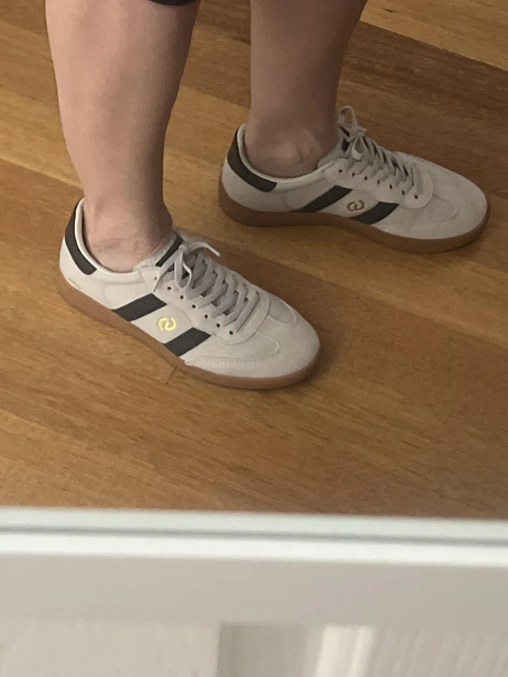 I love the white/green combo of these shoes and the fact that it's all smooth leather (I find suade daunting to look after). The lightening laces system is very convenient for quick on/off and I like that the soles are dark (don't need to clean all the time like with white soles) and sit quite high so no risk of scuffing the top of the toe box.
