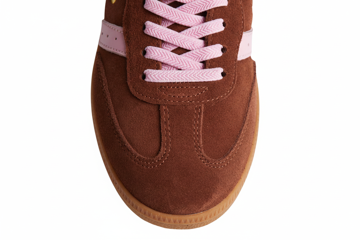 This is the sneaker for those who don't choose between versatility and personality. The rich coffee tones anchor your wardrobe staples, while the pink detailing brings just enough energy to make every step feel intentional. From coffee runs to creative meetings, it's a colorway that adapts to your rhythm without losing its edge.